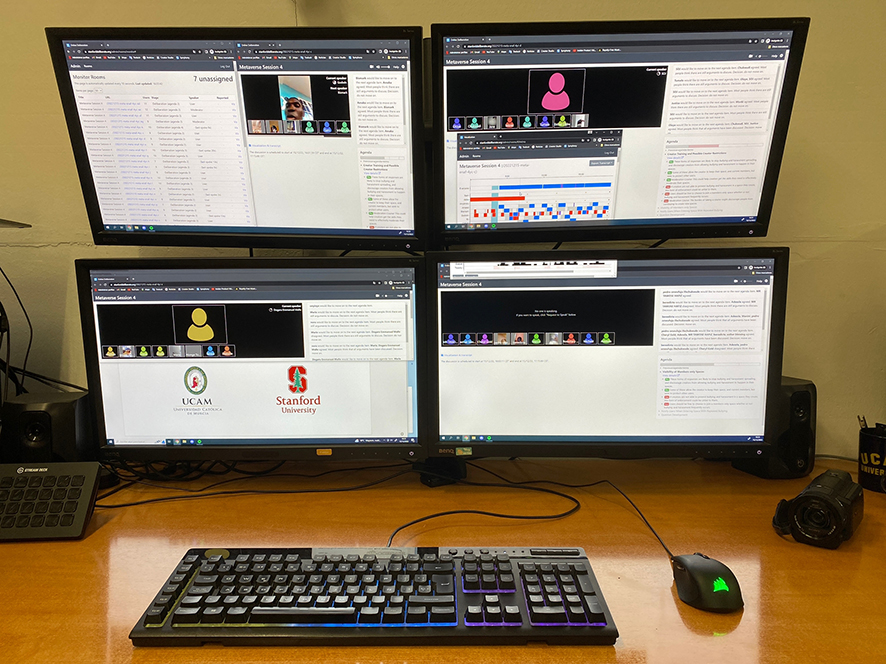 An interdisciplinary group from UCAM has participated in supervising, monitoring, and observing online sessions. Led by Pau Guardiola, UI/UX Multimedia Director and María Rocasolano, Law professor-researcher, José Ruiz, Law professor; Jorge Gil and Alberto Lanchares, members of the UCAM Multimedia team, and students Angélica González, Arturo Largo, Aldo Méndez, Francisco Poveda and Oliwia Górczewska.