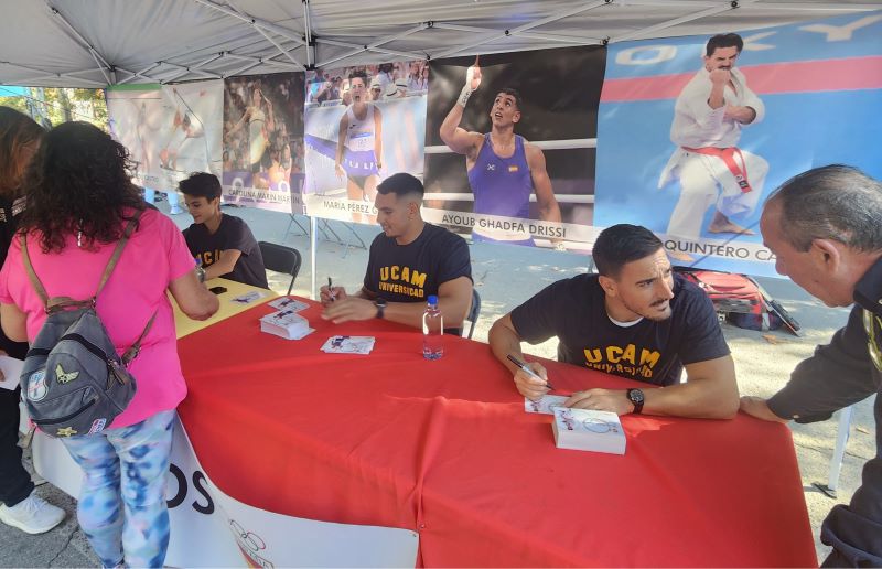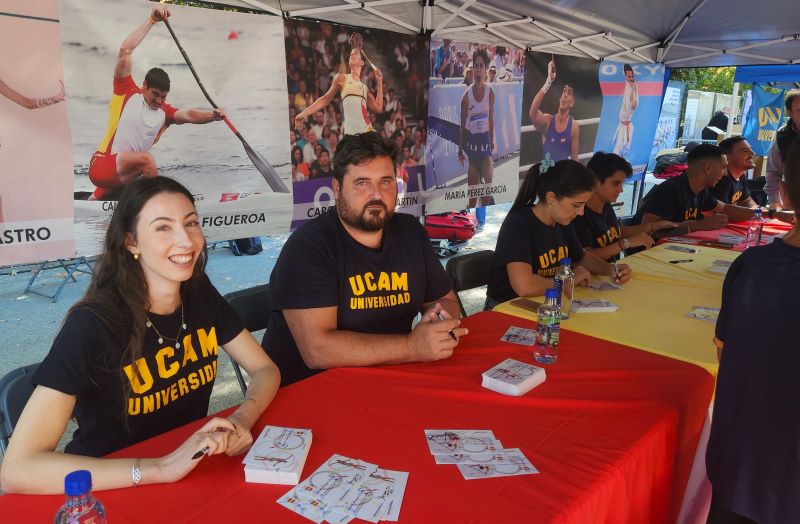 Together with the Olympic badminton champion Carolina Marín , they shared moments to remember, autographs and photos with the many people who came to the UCAM-COE stand, as well as other sporting references such as David Cal. The five-time Olympic medallist who is currently active in the UCAM Sports Service; Artemi Gavezou, Olympic runner-up in rhythmic gymnastics, and Ayoub Ghadfa, Olympic runner-up in boxing who, regarding the implementation of the new headquarters, pointed out that ‘many of the UCAM students are from Madrid and other cities; I think it is a very good initiative’.